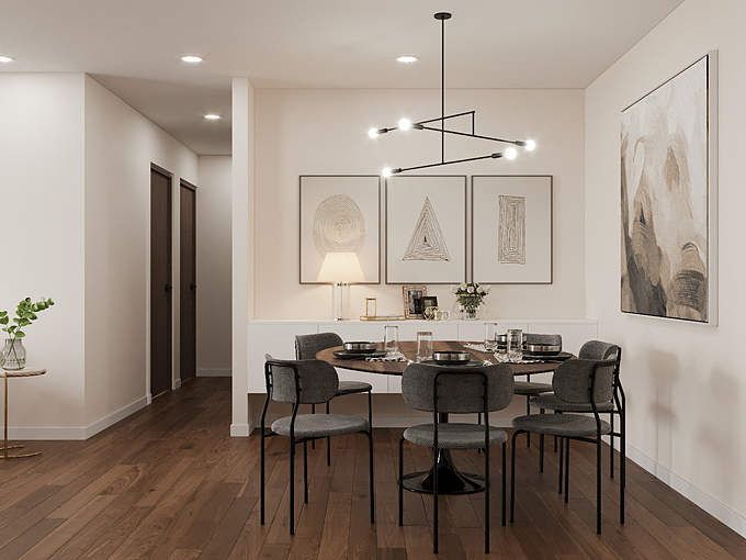 Phòng ăn thanh lịch, nhã nhặn cho gia chủ mệnh Kim với sự kết hợp màu sắc khéo léo